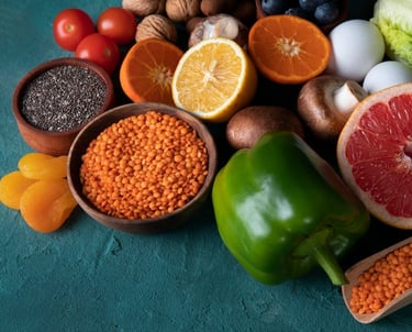 Deep-colored plants, herbs, spices, and phytonutrients to reduce oxidative stress and chronic inflammation.